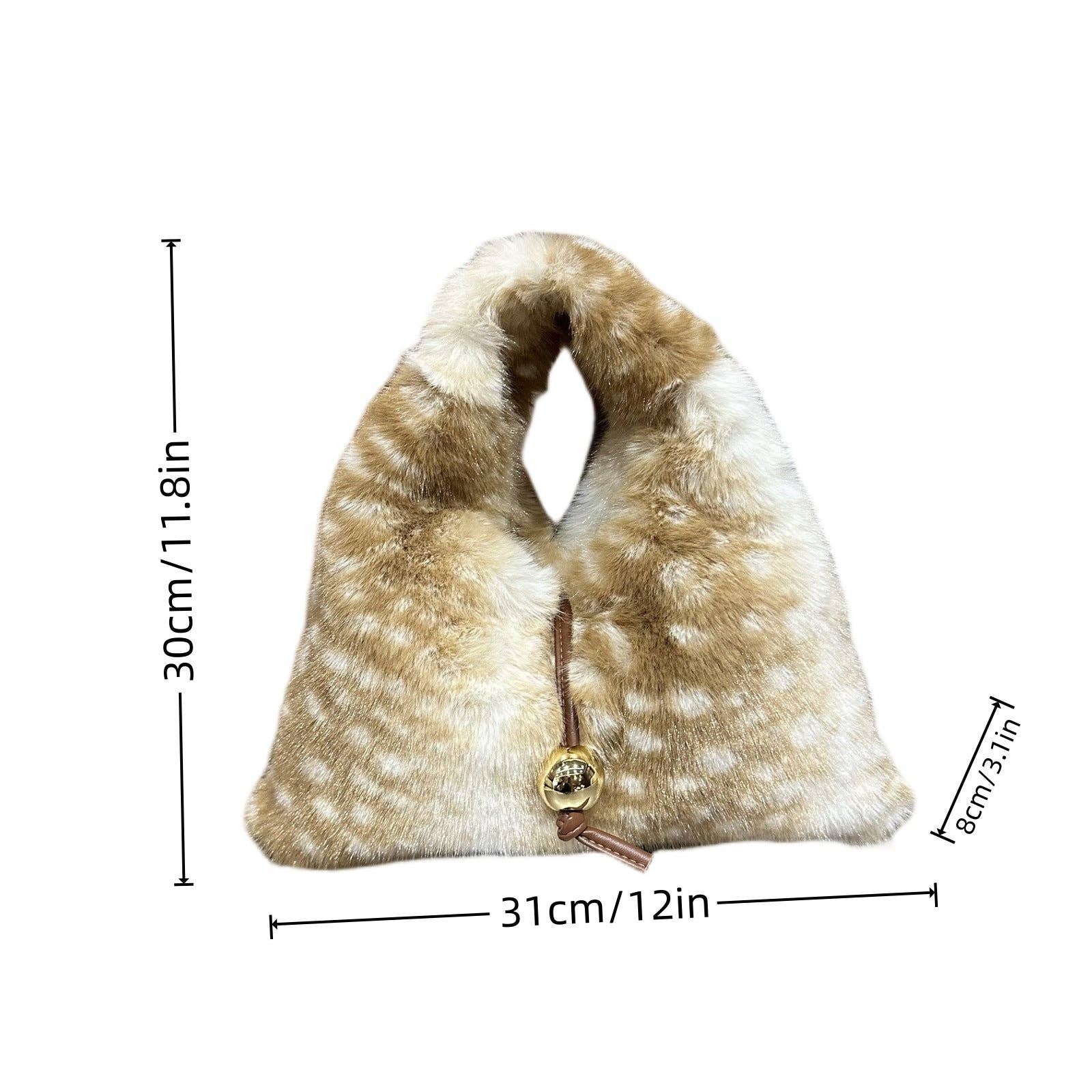 Faux Fur Deer Print Mini Tote Crossbody Bag