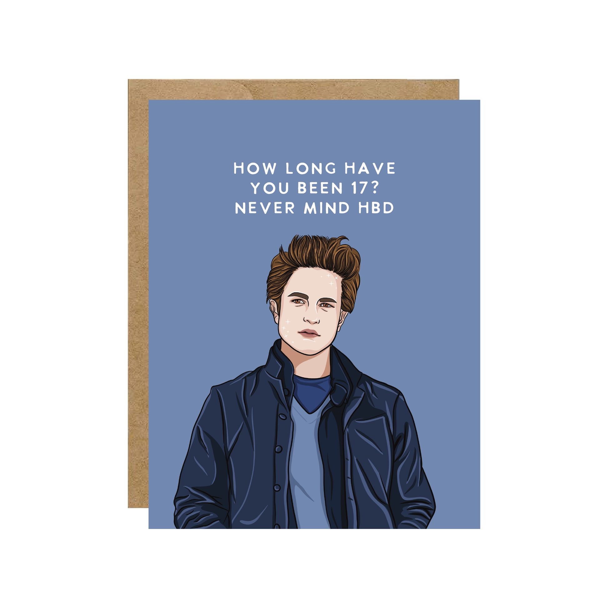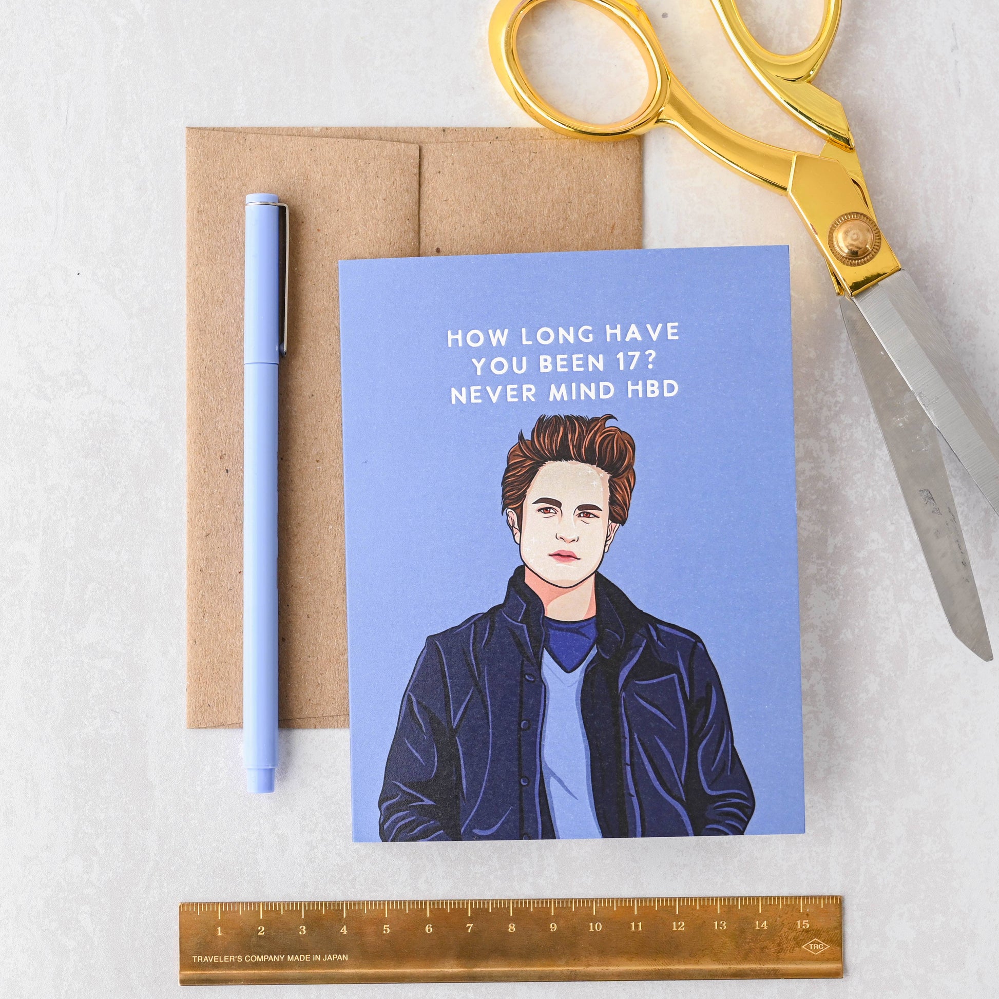 Celebrate their birthday eternally with this Edward Cullen-inspired birthday card, perfect for the Twilight-obsessed! Featuring a brooding yet dazzling design, this card captures the allure of Forks' most mysterious vampire. Whether they're Team Edward or just love an immortal romance, this card is sure to make their birthday sparkle.