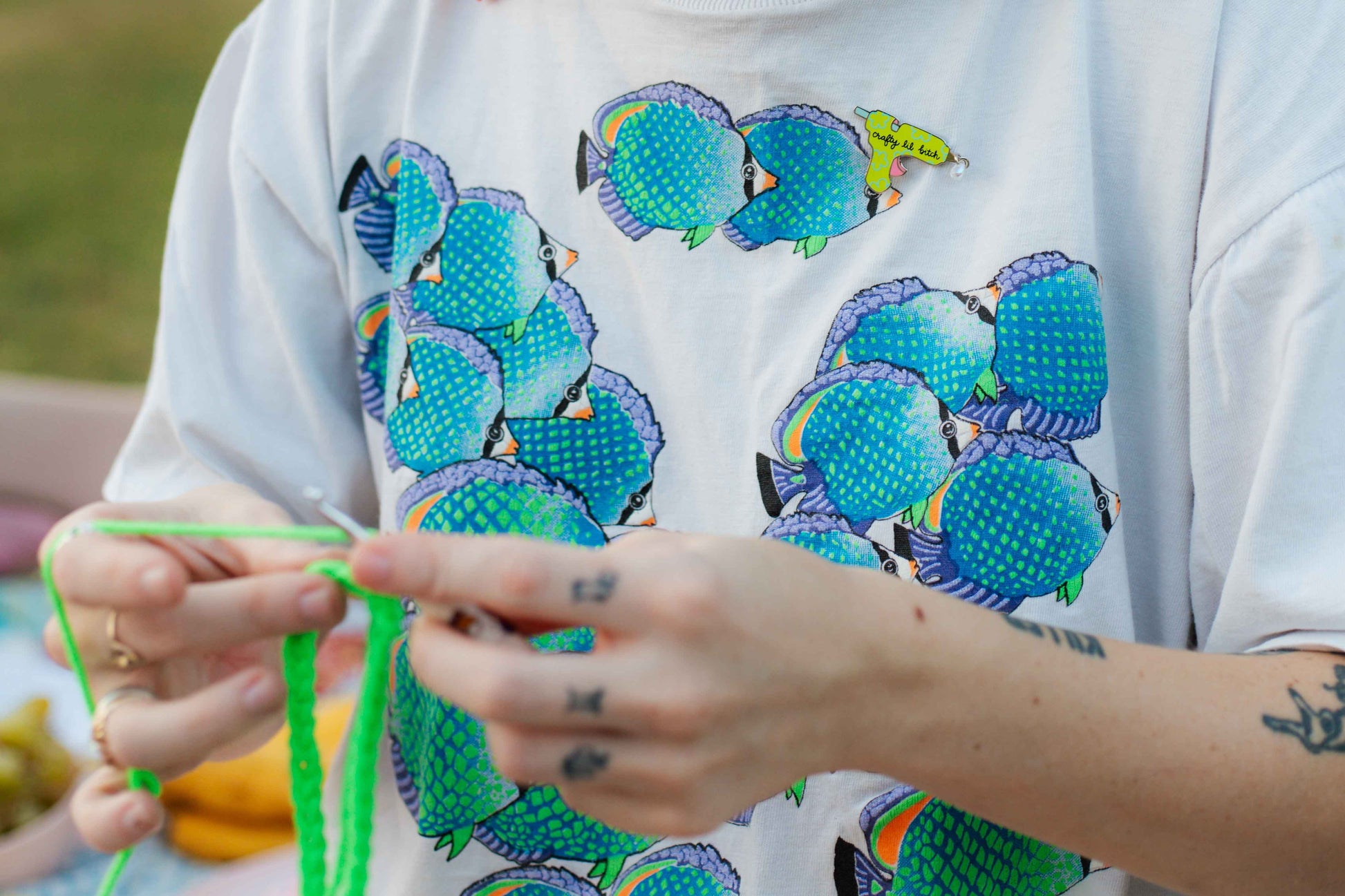 Calling all crafty lil bitches! You can now let everyone know that you mean business in the craft space with this lapel pin that even has a little opalescent bead dangling from the glue gun.