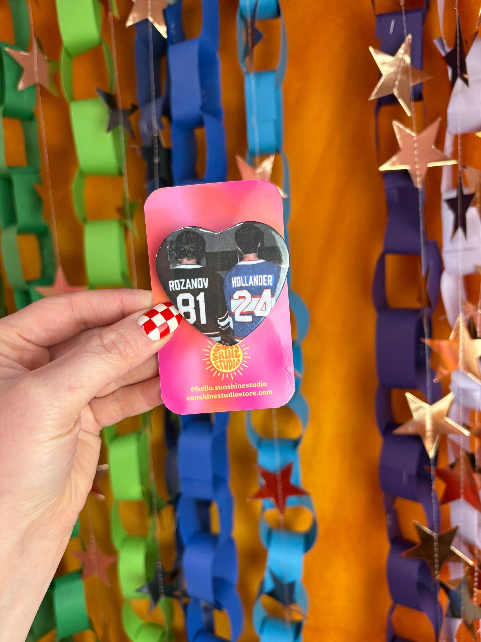 Rivalry. Legacy. Locker room tension. 🏒🔥 The Heated Rivalry Hollanov Jersey Pin is the ultimate collectible for fans who live for high-stakes hockey and even higher emotional stakes. Designed with a picture of the boys in their jerseys, this heart-shaped pin captures that iconic Hollanov energy in wearable form.