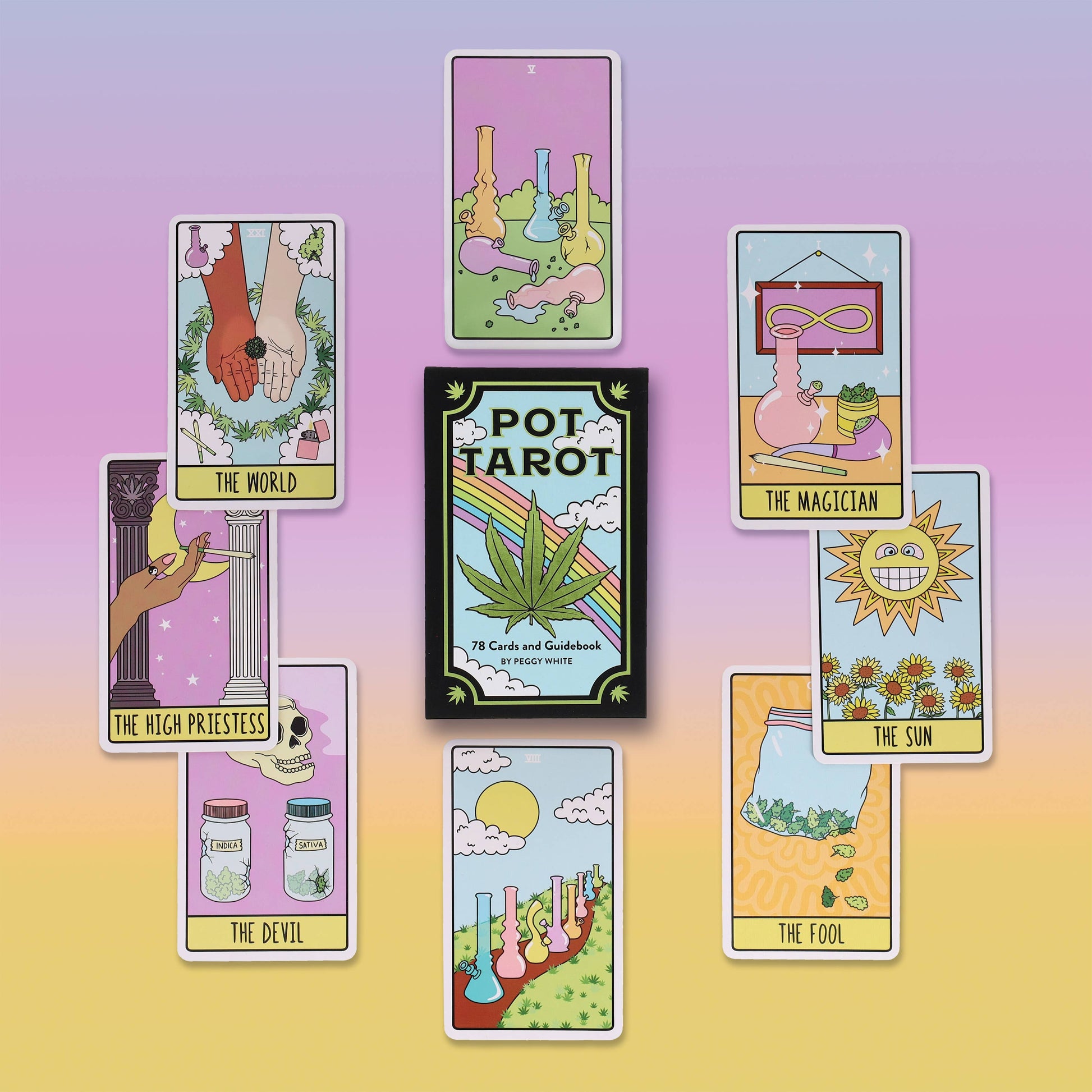 Let the cards clear the smoke from your eyes as you uncover the past, present, and future with this bright and beautifully illustrated tarot deck. For thousands of years cannabis has been used to bring clarity, inspiration, and a higher state of mind to those seeking guidance. Now the wisdom of weed can guide you in your divination with the help of Pot Tarot .